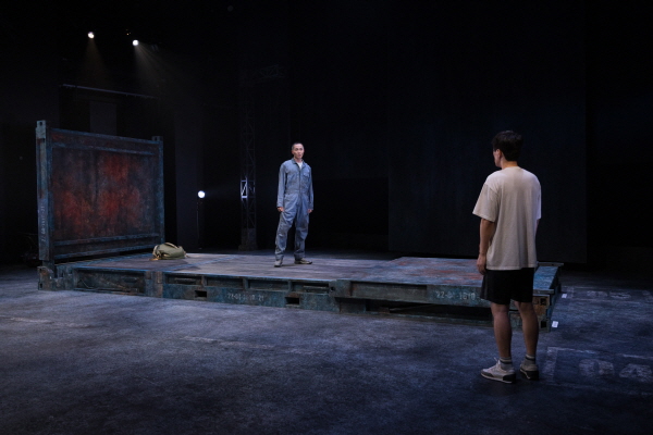 <엔드 월(End Wall)-저 벽 너머에는 뭐가 있을까?>(하수민 작/연출, 대학로극장 쿼드, 2025.09.10.~09.28.)는 2021년 4월 평택항에서 청년노동자 이선호 씨가 300kg짜리 컨테이너에 깔려 숨진 사건을 모티브로 만든 작품이다. 실제 사건에 대한 충실한 참조 덕분에 이 극은 노동현장에 대한 사실적인 묘사와 핍진성을 단단히 확보하고 있다. 산재 사망사고가 지속적으로 발생하는 노동현장의 문제를 고발하고자 하는 주제의식이 분명하다. 다른 한편으로는 안타까운 죽음을 맞이한 이선호 씨를 애도하고자 하는 마음이 서려 있다. <엔드 월>은 오늘날의 불법적인 노동현장에 대한 날카로운 고발이면서 동시에 그 속에서 부당하게 목숨을 잃은 노동자를 위한 진혼곡이다.