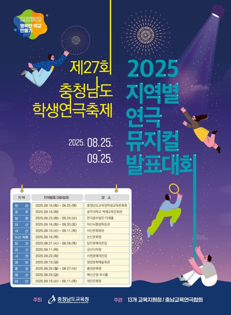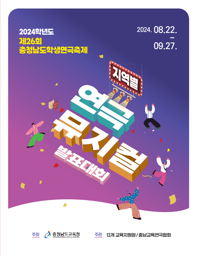 이 가운데 충남학생연극축제는 연극과 뮤지컬 공연을 통해 학생들의 잠재적 예술성과 표현력을 키우는 무대이다. 제27회를 맞는 올해 축제는 ‘초·중·고 학생이 함께하는 예술축제’로 운영된다. 19회까지는 중등 중심이었으나, 20회부터는 초등, 중등, 고등학생이 함께 무대에 오르며 세대 간 예술적 성장의 관계망을 형성하고 있다.