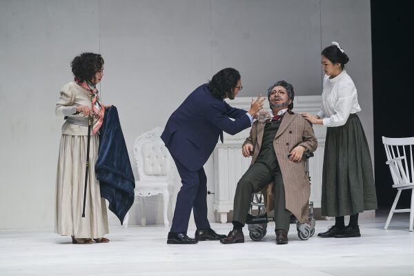 이번 공연에서 인상적인 것은 주목받지 못했던 인물들의 존재감을 키운 것이다. 톰 스토파드 <로젠크란츠와 길덴스턴은 죽었다>의 창작의도처럼 이 작품의 모든 등장인물에게는, 심지어 대사가 한마디도 없는 도른의 간병인 올가(이유진 분)에게도 명확하게 존재 의미가 부여된다. 특히 마샤, 도른, 야코프는 이번 공연을 통해 적극적으로 재해석된 인물이다. 마샤는 유명한 대사 “제 삶의 상복이에요. 전 불행하거든요.”으로 인해 주로 무기력하고 불행한 인물로 그려졌는데, 이번 공연에서는 감정에 솔직하고 자신의 욕망이 무엇인지 가장 잘 아는, 현실인식이 강한 주체적 여성으로 그려진다. 술과 담배를 거침없이 즐기며, 뜨레플레프를 향한 사랑을 감추지 않으면서도 희망 없는 꿈에만 매달리지 않고 현실적인 선택을 하는 인물이라는 사실이 강조된다. 마샤에 대한 재해석이 요청되는 동시대 변화를 이번 공연에서 잘 수용한 것으로 보였다. 도른도 감정을 절제하며 객관적 시선을 견지하는, 유일하게 합리적인 현실주의자로서의 면모가 잘 전달된다. 뜨레플레프의 예술세계를 이해하는 진보적 지식인이며, 아르까지나를 사랑하지만 희망 없는 사랑에 매달리는 대신 감정을 절제하며, 뽈리나의 구애도 적절하게 정리하는 생동감 있는 인물로 보였다.