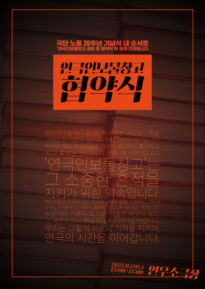 “자신의 기록이 또 다른 예술 씨앗이 되고, 그 씨앗이 다시 무대 위에서 피어날 수 있도록 ‘연극인보물창고’는 그 소중한 흔적을 지키기 위해 최선의 노력을 다할 것입니다. 많은 연극인의 참여와 격려 부탁합니다.”