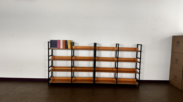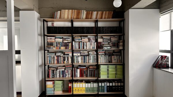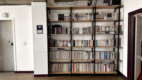 | [사진7] 소극장 ‘공터다’의 4층에 있는 ‘연극인보물창고’ 내부 전경이다. | [사진8] 비어있는 책장이 기증자료를 기다리고 있다. |