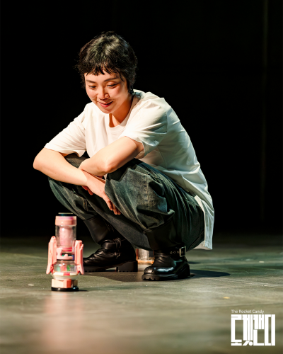 박 김풍년 연출님의 연습 과정을 거쳐 강훈구 연출처럼 무대에서 노는 것이 저의 이상이예요. 그런데 훈구 연출과 작업하면서도 저는 잘 놀지 못해요. 단계를 짚어가며 수행을 해야한다는 강박에 진짜로 놀지 못하는 느낌이랄까요? 훈구 연출과 첫 작업을 할 때 김풍년 연출님과는 너무나 다른 연습 환경에 놀랐어요. 즉흥을 막 하는데 –제가 즉흥을 정말 못하거든요?- 죽을 거 같더라고요. 훈구 연출과 <로켓 캔디>로 처음 만났는데 공연 첫 주 내내 사시나무 떨듯이 바들바들 떨리는 거예요. 실수하고 망칠까 봐. 헛구역질도 계속 나오고. 그 정도로 스트레스가 심했었어요. 그러다 어느 순간, ‘여기선 좀 놀아 볼까?’ 이런 호기심도 생기고 그러더라고요.