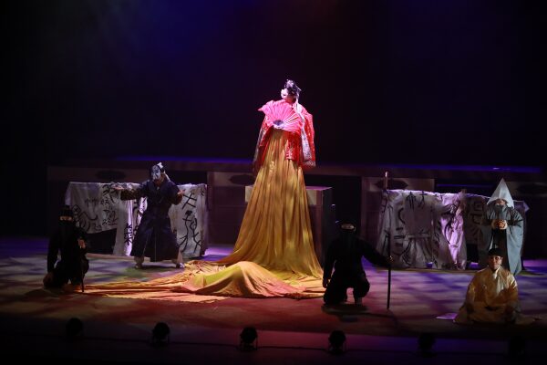가장 인상적인 장면연출은 천추태후 장면이다. 권력의 정점에 있는 천추태후가 거대한 형상으로 등장한다. 화려한 붉은색 상의에 무대 바닥에까지 길게 늘어진 노란 장치마를 입고, 붉은 색 부채에 흰색의 부분 가면을 쓴 천추태후의 그로테스크함은 관객의 시선을 장악한다. 그녀는 제일 높은 단 위에서 아래를 내려보는데, 그 아래 바닥에 그의 아들 제7대 목종이 존재한다. 권력욕의 표상인 치마를 목종에게 씌워 움직이지 못하게 한 것으로 이들의 권력관계가 전경화된다. 천추태후와 김치양 역시 치마에 감싸여 무대에서 사라지는 데, 이는 그들의 몰락을 상징한다. 권력의 허망함을 보여주는 이 장면은 목종의 죽음으로 이어지면서 왕순이었던 현종이 권력의 속성을 깨닫고 각성하는 계기를 보여준다.