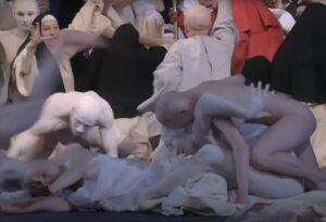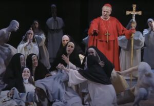 4막에서 파우스트 일행을 따라온 루프레히트는 이 장면을 내려다본다. 메피스토펠레스는 ‘저쯤 어디에 그녀(레나타)가 있을 거야.’라며 난장판의 한 곳을 가리키지만, 루프레히트는 한 발짝도 움직일 수 없다. 연출 데이비드 프리먼은 무대 위 합창단(수녀들)에게 극적 연기와 노래를 지시했고, 나머지 빈 곳을 빼곡하게 악귀(무용수)로 채워 넣었다. 전라인 악귀와 순결한 수녀가 뒤섞이면서 매우 선정적인 장면이 연출되는데, 이는 괴테 원작 ‘발푸르기스의 밤’으로 클라이맥스를 구축하려는 의도적 연출이다. 음탕한 아수라와 안내자 메피스토펠레스는 동일하고, 관람자가 파우스트에서 루프레히트로 바뀌었을 뿐이다.