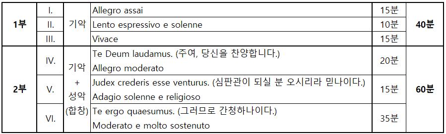 총 6악장 구성으로, 1부는 성악 없이 오케스트라로만 연주하는 세 악장이 빠른-느린-빠른 악장 순으로 배치되어 있다. 3악장 형식의 교향곡처럼 보이지만, 각 악장이 ‘쉼 없이(attacca)’로 연결되어 있어 거대한 음(音) 덩어리처럼 느껴진다. 2부는 네 명의 독창자와 대규모 합창단들이 가세해 라틴어 찬가 ‘Te Deum’을 노래한다. 길이가 너무 장대해 편의상 4, 5, 6으로 나누었지만 2부는 사실상 완전히 독립된 노래라고 볼 수 있다. 즉 100분이 넘는 브라이언의 ‘고딕’ 교향곡에서 귀가 쉴 수 있는 시간은 1부와 2부 사이 딱 한순간뿐이다.